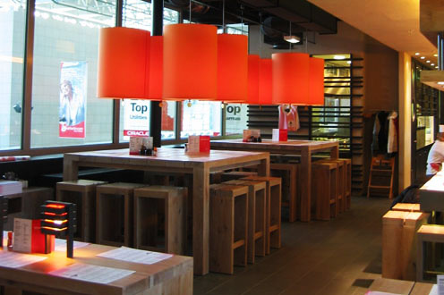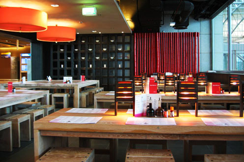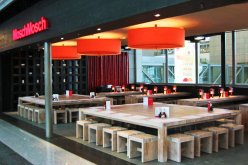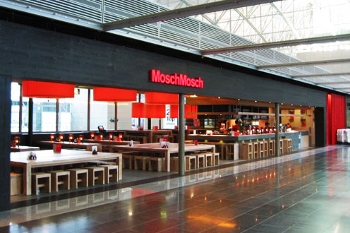 Asiatische Nudelbar im Flughafen Frankfurt mit frischen Ramen als Schwerpunkt der Speisekarte.